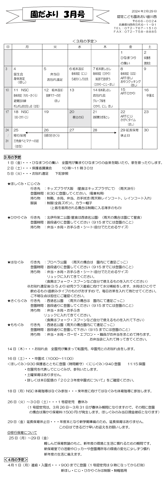 2025年(令和7年)3月の行事予定・献立表を掲載しました。